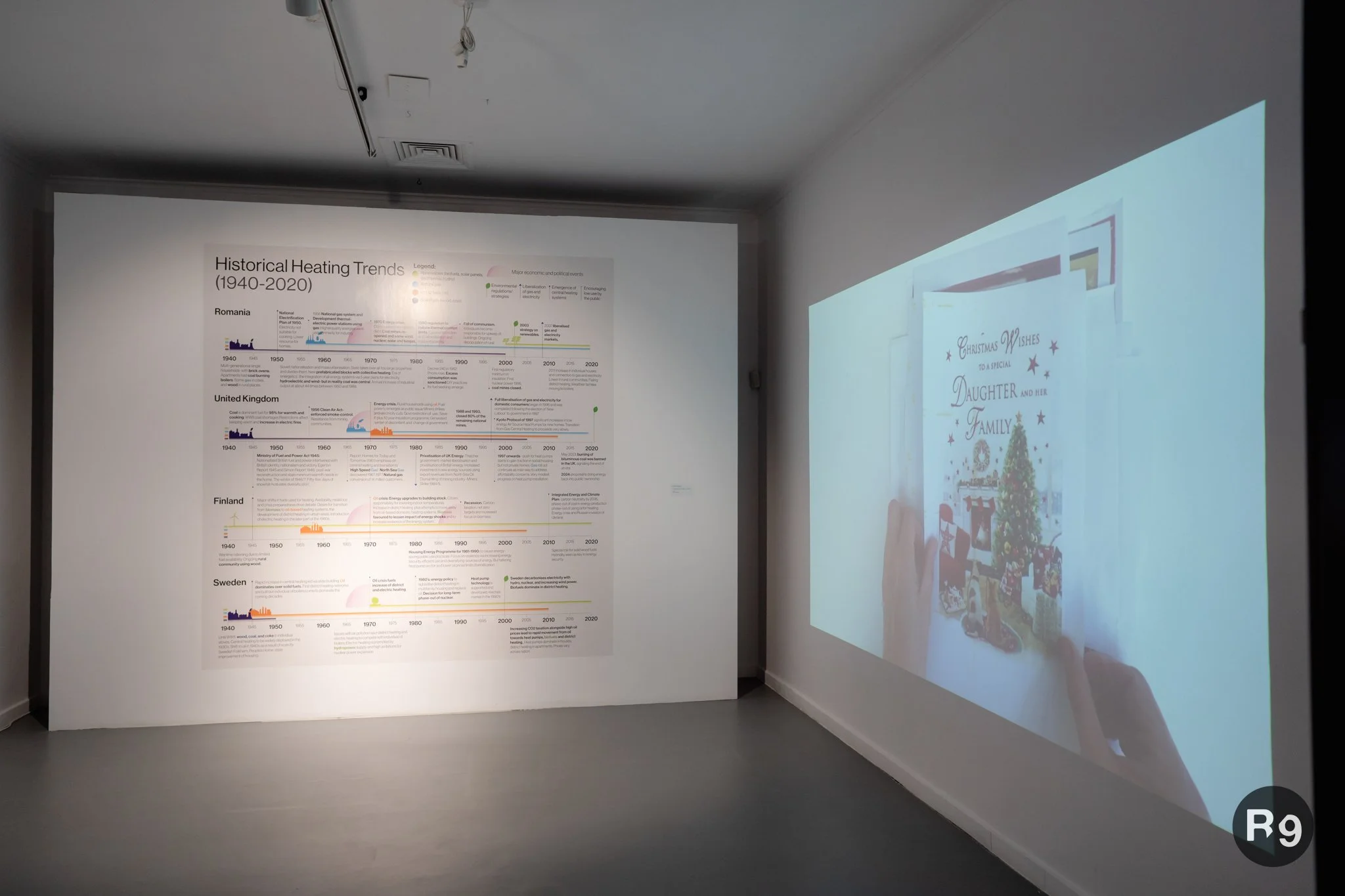 Becky Shaw (UK) has been working in Rotherham and Stamford. Currently the UK home heating landscape is a patchwork including majority gas central heating, some use of oil, small pockets of contemporary sustainable heating via air source pumps, and also significant uses of solid fuel, mainly as a supplementary heat source. Up until the 1970s the UK dependency on burning coal was extremely high, with coal and mining communities being a very influential part of historic British identity. Within the UK oral histories, the commitment to individual and tangible heating sources seems connected to a need for security and control. Becky has been experimenting with ways to ‘animate’ the UK heating stories, looking for ways to bring together materials from different times: analogue drawings, children’s book illustrations and digital Christmas cards featuring the open fire. She has been exploring the visual ‘transition’ between different materials to think about our relationship to the material and the intangible, individual and social and the present, past and future.